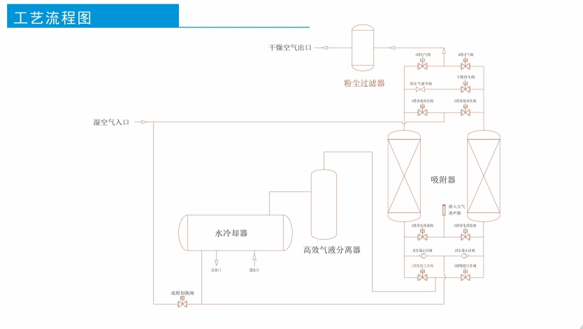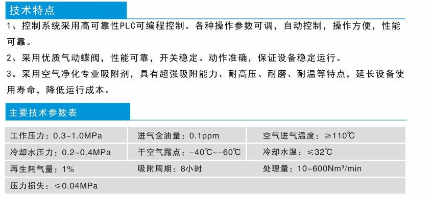 余热再生干燥机吸收了吸附式干燥机在高温下的优点和常温吸附能力的特点,避免了无热干燥机切换时间短、再生气体消耗的缺点,也克服了吸热机械和电气消耗的缺点。它利用空压机排气高温的特点,对吸附剂进行再生脱水,同时利用变压吸附原理,压缩空气干燥一种设备适用于排气温度为110℃的空压机。