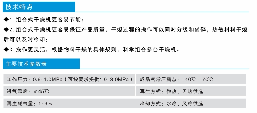 组合式低露点压缩空气干燥器是通过结合冷冻和微热再生干燥技术从压缩空气中去除湿热压缩空气中的水蒸气而开发的,可以达到-40℃~-70℃(可调)露点以下的压缩空气质量水平。保证燃气设备和工艺设备的正常运行,提高生产效率和经济效益节能组合式低露点压缩空气干燥机是我公司研制的新型干燥设备。